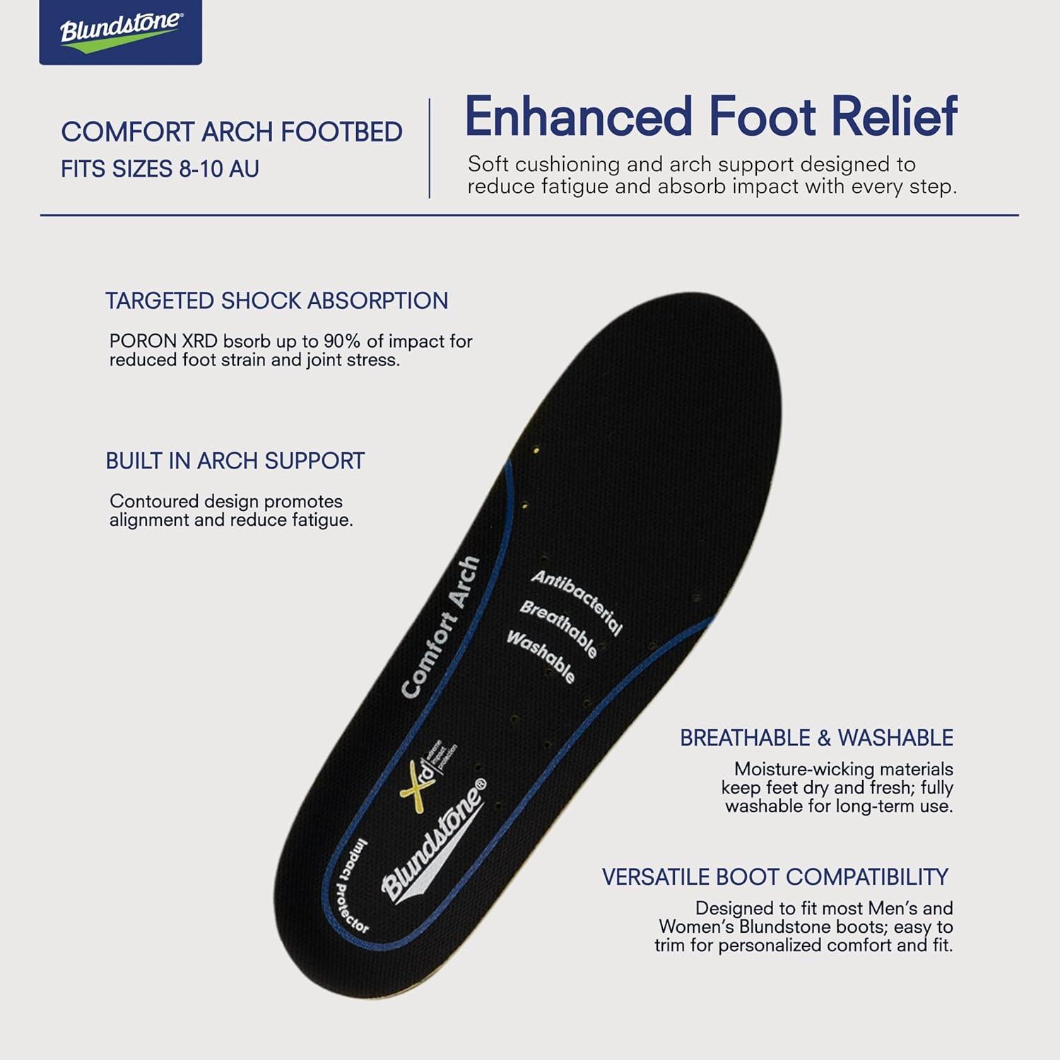 Blundstone Comfort Arch Footbed, PU/EVA with PORON XRD Inserts, Cushioned Insole for Boots, Shock-Absorbing Up to 90%, Orthotic Shoe Insert (Trim to Fit)(Black)