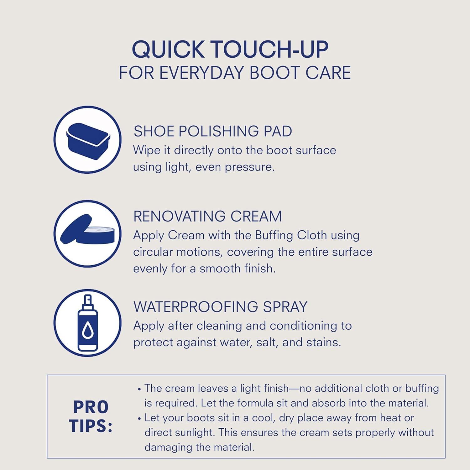 Blundstone Shoe Care Kit for Leather Boots – Includes Renovating Cream, Buffing Cloth, Waterproof Spray and Polishing Pad(Brown)