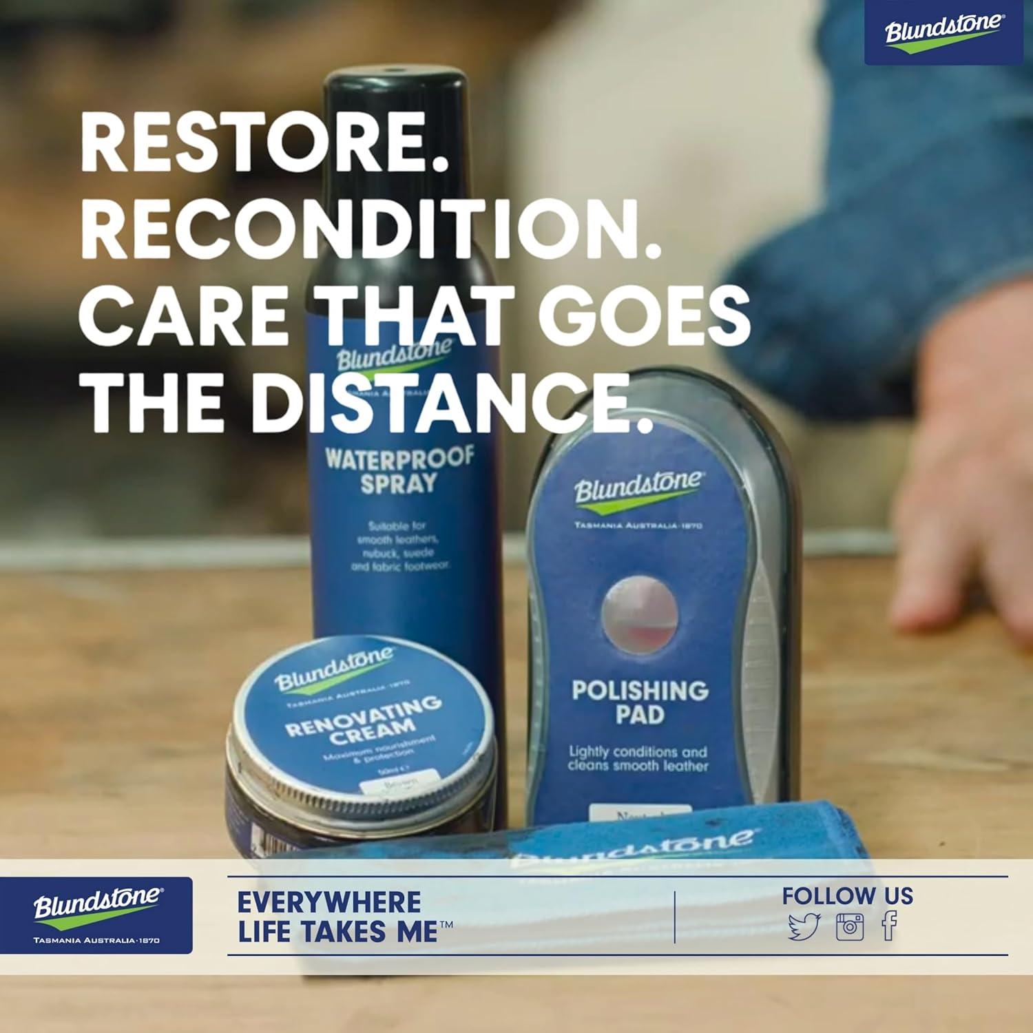 Blundstone Shoe Care Kit for Leather Boots – Includes Renovating Cream, Buffing Cloth, Waterproof Spray and Polishing Pad(Brown)